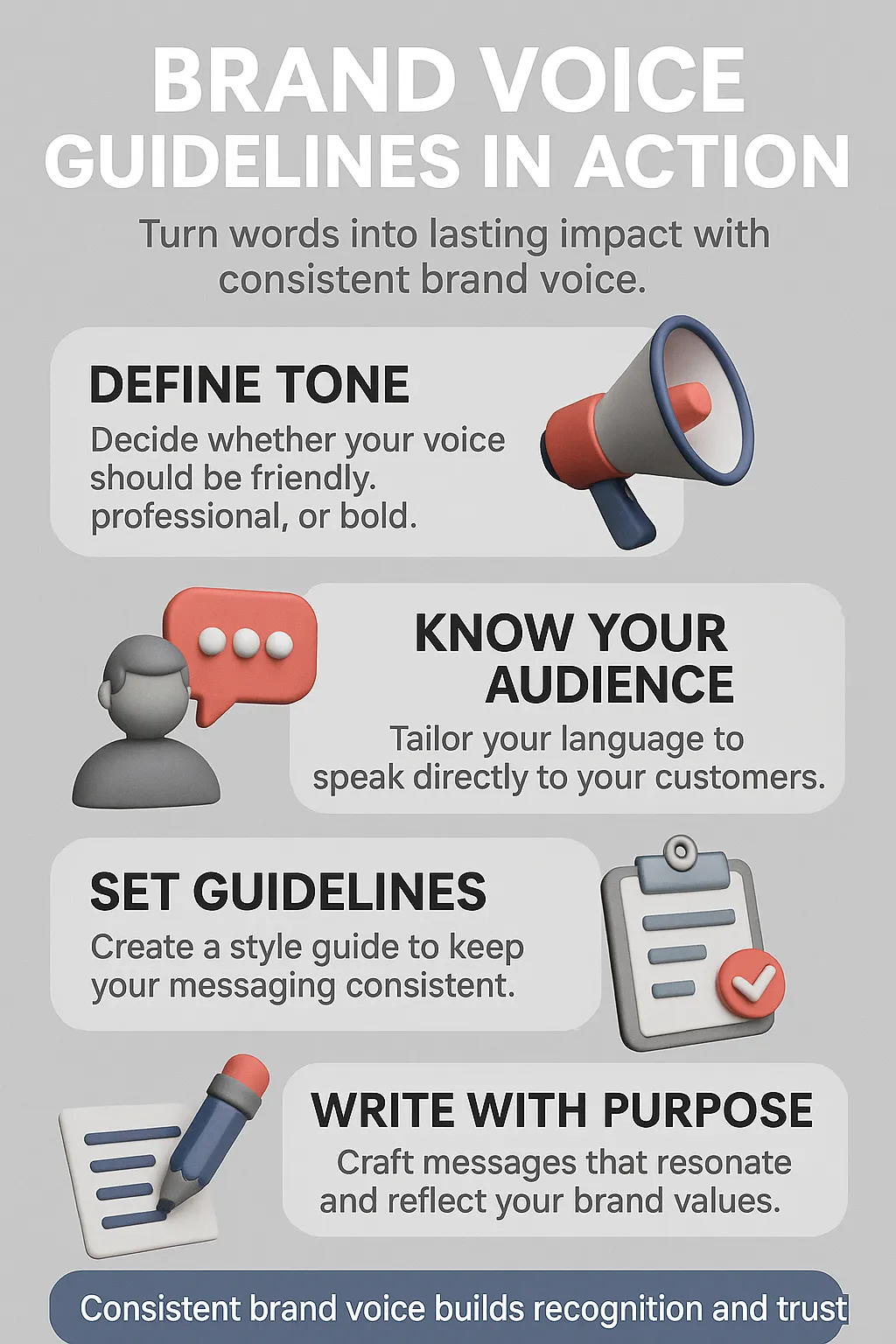 Brand voice guidelines are more than a document—they’re the framework that ensures every message your brand shares feels authentic, consistent, and memorable. When applied effectively, they transform words into a lasting impression that builds trust with your audience.